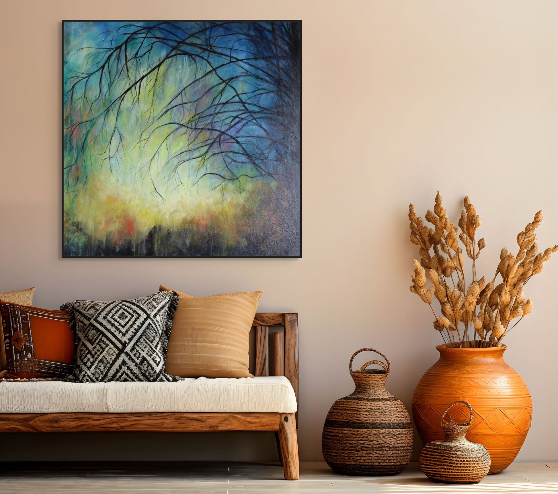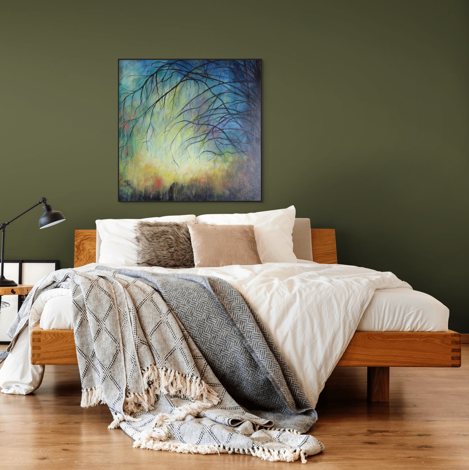 Famous words of our Saviour. I am the Vine, you are the branches. Remain in Me as I remain in you. This painting evokes our hope and freedom that is from our faith that we are connected to a powerful King and never alone.